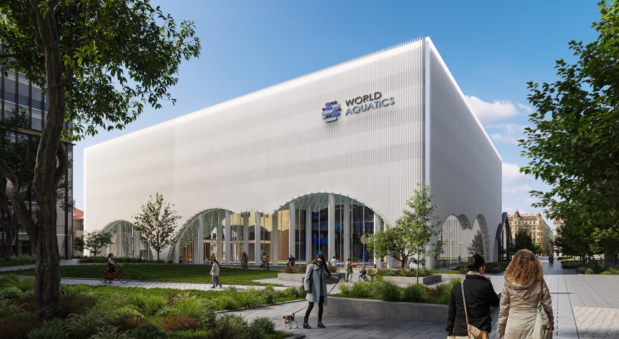 The new headquarters of World Aquatics will be built in Budapest’s District XIII, as part of the Láng Quarter development project. Surrounding the headquarters will be a nearly 2-hectare park, encircled by modern, sustainable residential and office buildings. The urban district is based on the “15-minute city” concept, meaning all essential services will be accessible within a short walking distance.