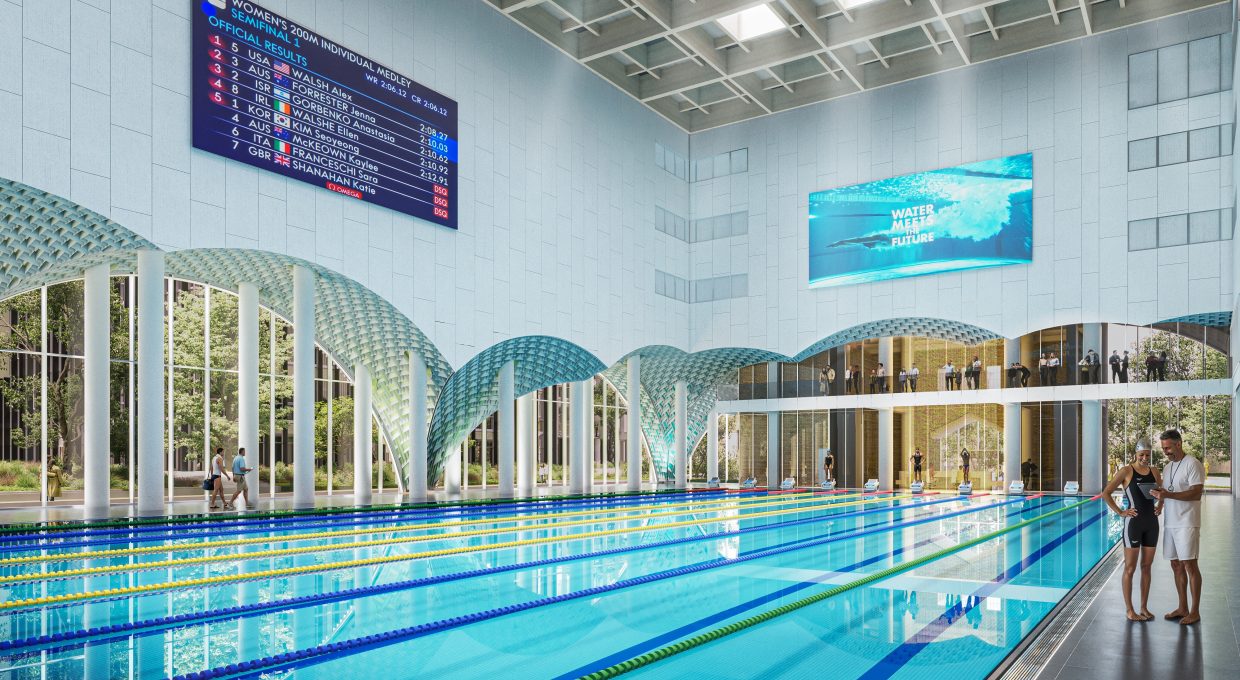 According to the plans, the centerpiece of the new facility will be a 50-meter competition pool, which can be converted into two 25-meter pools or adapted for both women's and men's water polo matches as needed. One of the most unique features of the complex will be a covered giant diving tower, unparalleled anywhere in the world.